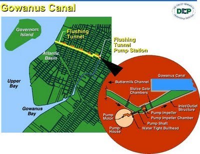 The Brooklyn Daily Eagle has an interesting article about the Gowanus Canal's flushing tunnel pump, which is slated to get an upgrade at the end of the year. Because the Gowanus has little natural current, the flushing tunnel was built to draw in fresh water from the nearby Buttermilk Channel.