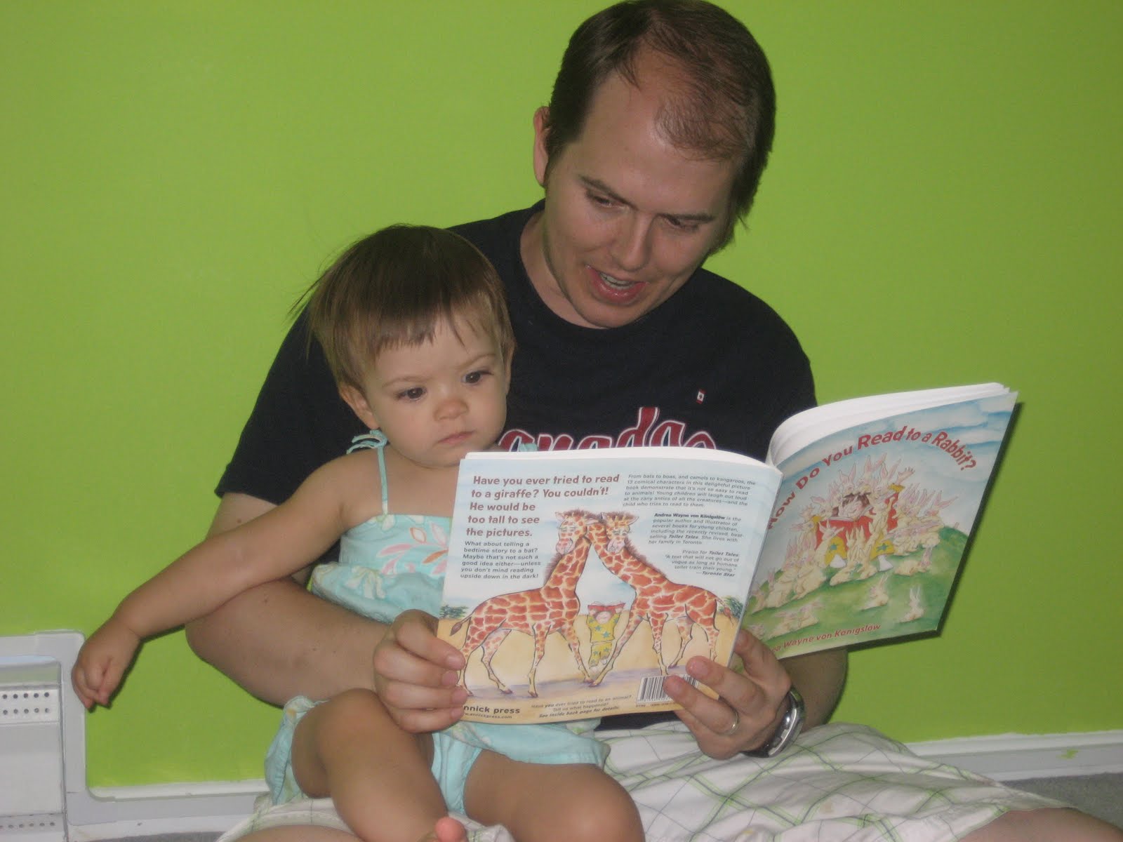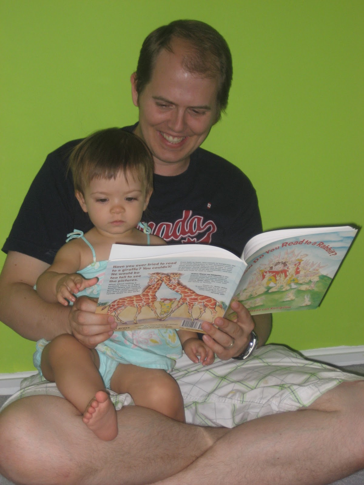 This is my grandaughter Violet's official first book. I'm sure there were many other board books that she gummed along the way but How Do You Read to a Rabbit is her go-to favourite because she loves the pictures. She loves animals, anyway, but how can you resist Andrea Wayne's whimsical gentle drawings? I love her Bing and Chutney characters too and have a portrait of them hanging in my bedroom. Violet currently likes the dolphin page in her book and has learned the phrase "all wet" from it.