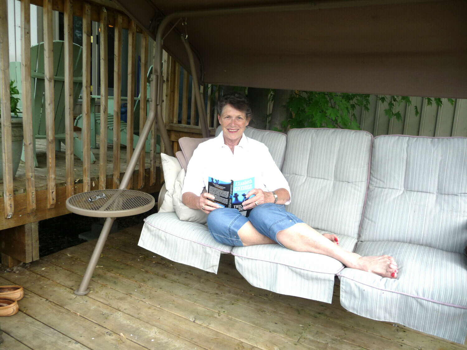 On a Garden Swing on the Deck, Karleen Bradford reads This Body of Death