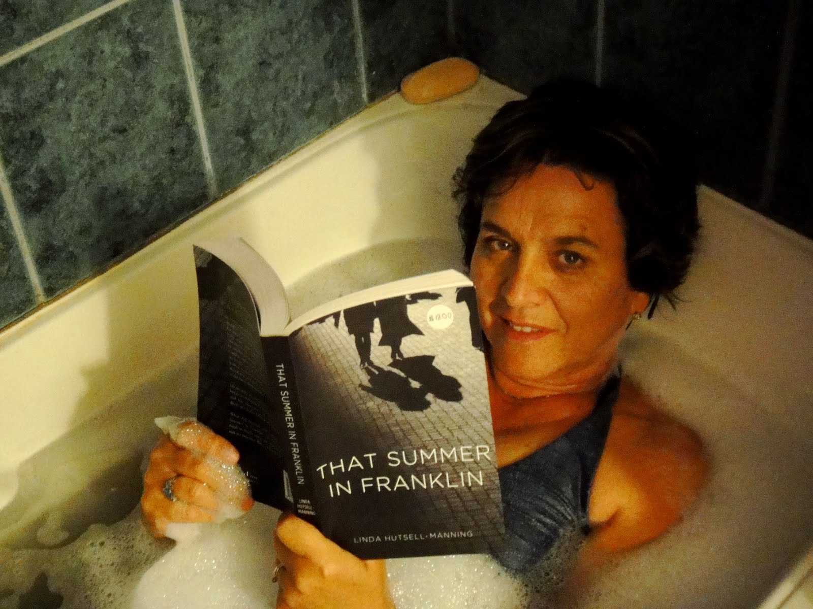 Lots of times I read my friends' books and it's a way of staying in touch with them or getting to know them better. My writing buddies are all Canadian so often I enjoy a fairly local setting too. Here I'm reading That Summer in Franklin by Linda Hutsell-Manning. Franklin seems a shoe-in for Cobourg where Linda really lives (and so does my brother). The two main characters are struggling with failing aging parents, one a father and one a mother. I can identify with that. They both share a history that involves a death in a hotel during their summer job.