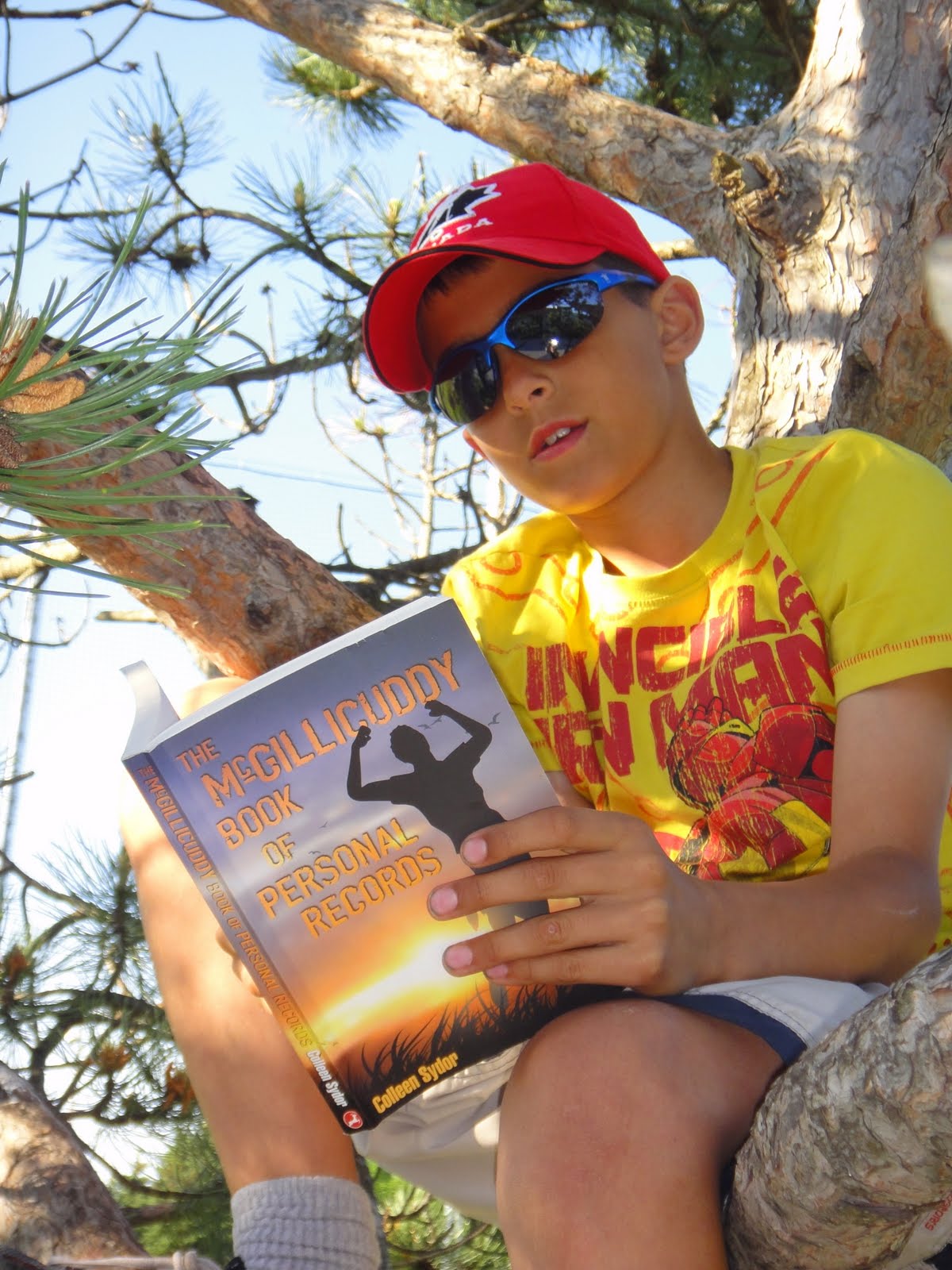 Today I snagged a guest reader, 10 year-old Hunter McNicoll, who was enjoying The McGillicuddy Book of Personal Records (Red Deer Press)in a tree near the library. "I like that what happens is unexpected," says Hunter. He also enjoys the interesting quotes from random famous people at the beginnings of chapters. From Chapter Seven: Twenty years from now you will be more disappointed by the things that you didn't do than by the ones you did do. So throw off the bowlines. Sail away from the safe harbor. Catch the trade winds in your sails. Explore. Dream. Discover. (Mark Twain)