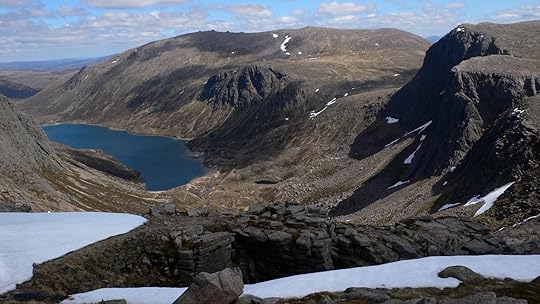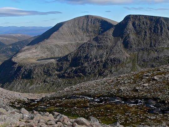 Bod an Deamhain (Devil's Point) from Beinn BhrotainThe night of that first memorable day was spent in a tiny tent on a tundra-like swathe just below the summit of Devils's Point, or more correctly, Bod an Deamhain (try ‘pot-in-john’). I woke in the morning to a high and magnificent landscape that was flooded in early morning sunlight. From somewhere nearby a bird was pouring out a remarkable song and incredibly, about fifty metres away from my tent, stood three rather threadbare and quite ugly reindeers. At that early point in my outdoors career I was barely on acquaintance terms with red deer never mind reindeer and the sight of them was both exotic and bewildering. It was only later that I learned that Mr Utsi from Lapland and his colleague Dr Lindgren were trying to reintroduce reindeer into the Arctic-type landscape of the Cairngorms from their base in Glenmore.The rest of that day passed in a dream. I climbed Cairn Toul before returning to the head of Coire Odhar where I followed the footpath back towards the little bothy that lay below the steep black slopes of Bod am Deamhaim. Another track followed the River Dee all the way back to Linn of Dee.It was some years before I climbed Cairn Toul again, but this time from the comforting perspective of experience and familiarity with this high and spectacular mountain range. Some of our finest hills lie well beyond the convenience of roads or tracks and require considerable effort to reach their foot, never mind their summit. Cairn Toul is a good example. Rising in the middle of the Lairig Ghru, that geological slash that cuts through the heart of the central Cairngorms, its ascent requires a long walk-in from any direction, but, as with most isolated hills, the extra effort is worth it for that extra dimension of inaccessibility.Cairn Toul, the ‘hill of the barn,’ is certainly one of the more shapely and elegant Cairngorms, despite its name. With its double-topped summit ridge thrown up by the apex of three well-sculpted corries its ascent is usually tacked on to the high level traverse of Braeriach and Sgor an Lochain Uaine (I refuse to call it Angel’s Peak as the OS suggests. Try ‘skoor an lochan oo-anya’ – what sounds better?) from the north, or from Coire Odhar in the south. Great routes as these are, Cairn Toul is worthy of a day dedicated to it alone.It was, indeed, a long walk-in. Four hours to be exact from the Sugar Bowl car park on the Glenmore-Cairn Gorm road via the boulder-strewn Chalamain Gap and the Lairig Ghru. Four hours of hard walking and I was only at the foot of the An Garbh Choire, working out how to make my way up through an intricate maze of granite slabs and buttresses.The plan was simple enough - to climb up into the mountain’s Coire Lochan Uaine, then continue to the summit by it’s north ridge, but as I stood at the foot of the hill and gazed up at the slopes that led to its upper corrie I couldn’t help feel both dwarfed and intimidated by the audacious scale of things. The An Garbh Choire is one of the biggest corries in Scotland and the sense of spaciousness, allied to the steepness of the ground before me, almost gave me second thoughts about attempting it.It can be very disconcerting climbing a slope that lies only inches from your nose, but this kind of scrambling does heighten the senses, and makes you climb very carefully. A wriggling route led past rocky outcrops and all the time I was aware of a steep rock band looming down from the top of the slope. My salvation lay in the hope that there would be an easy ramp traversing below it onto the lip of the corrie. If there wasn’t I would probably have to reverse the route I’d come, and I wasn’t sure if I could do that.The sense of relief and exhilaration when I pulled myself up between two outcrops to see a long easy- angled slab run below the black rock band was overwhelming. In no time at all I reached the corrie’s lip, rejoicing in the sheer mountain splendour of the place. A light breeze rippled the black waters of the corrie lochan, a steep ridge rose to the sharp peak of Sgor an Lochan Uaine and behind me the steep walls of the An Garbh Choire restrained this elemental world of rock, water and air. To say I floated up the rest of the route might be poetic exaggeration, but by this time the endorphins were in full flow – I was on a natural high.I wish it lasted the rest of the day, but the descent to the Lairig Ghru was laborious and the long walk back exhausting. I had used up my reserves and it was a weary hill-walker who eventually limped into the car park in the gloom of evening. Long walk-ins are great – long walk-outs less so…On the morning of that first wonderful camp in the Cairngorms I had been greeted by an audacious outpouring of song from a little bird that I couldn't identify. It was to be some years before I learned it has been the spring song of the cock snow bunting, as wonderful a sound as you'll hear anywhere.