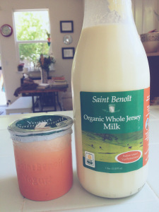 It’s not the best yogurt, but it’s easy to make, great added to granola, and fun to think about what you can add next time (we were talking about lemon this morning). Jesse was, at breakfast, super proud of his efforts (he measured the temperature like a pro–making sure harmful bacteria is killed must be his calling or something).