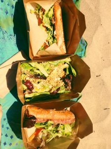 In California I’ve learned some weekend basics: wear layers + carry a blanket for an impromptu beach picnic. Oh, I’ve also rediscovered the joy of buying a picnic and eating out of containers.