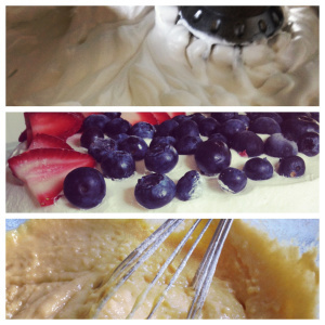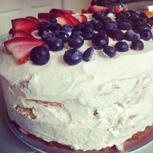 We made a chiffon cake with layers of berries (picked from Swanton farms) and whipped cream. Yum. Jesse’s decorations were “abstract” at best, but I can’t complain…it’s nice to be in the kitchen together. And the cake tasted AMAZING.