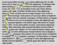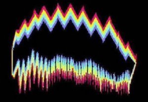 That's not a perfect representation of mine; rather than a cross-hatch of color I see actual jagged lines, usually neon-bright, like a flickering explosion effect from an old video game. I used that image to show you how disruptive it is to my actual vision, getting in the way of things and blotting out words, objects, and faces. In terms of shape and color, they're a lot more like this: