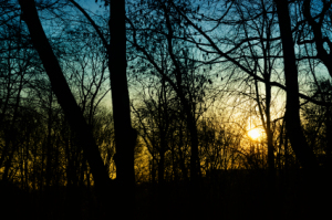 Behind our farm is a large field that lies fallow in the winter and is planted with corn and hay in the growing season. The edges of it are grown up in weeds and wild flowers. The land slants uphill and meets tree-covered hills at the top of this wide swathe of land. Nearer to the base of the field, just on the other side of our property, is a derelict 19th century barn where stray cats, possums, raccoons, birds, foxes, and sometimes coyotes hangout. A red-tailed hawk patrols overhead and it’s a good place to see birds. Tall, seemingly random trees enclose the site where the house once stood. It’s a fairly benign place to be in the spring. Not so much on an eerie fall evening.