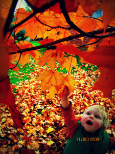 Mom took the pic of the chipmunk on the pumpkin and the one toward Reddish Knob in the Alleghenies above. Daughter Elise took the others of the leaves, trees, grandbaby Chloe with our pumpkins, and the mountains. Grandson Colin is the baby reaching for the leaves taken by his mom, my daughter Alison. Autumn is a family time.