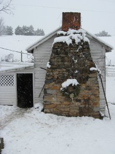 It’s bad luck to bring a shovel into the house ‘because it is a grave tool.’ Some also think a hoe in the house bodes no good.~ (Image of old smokehouse from the outside and from the inside below. The smokehouse is at our favorite Christmas tree farm outside the tiny hamlet of Singers Glen.