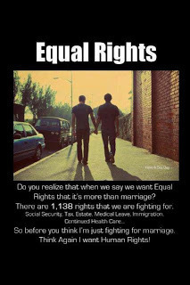 When I saw the photo below on social media I decided to post it here because I sometimes think that people think LGBT men and women are fighting to legalize same sex marriage for romantic and emotional reasons only. That's only part of the fight. A big part, yes. But not the whole story. It's about all kinds of human rights most people have and take for granted that we'd like to have as well.