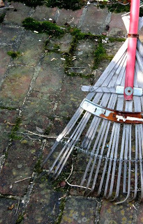 ETA: Photo from Morguefile.com. I wouldn't have that kind of moss on my patio or a rake that looked like that. But the photo is free to use.