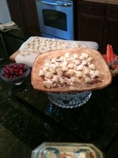 Sometimes it's homemade pasta. In this case, it's gnocchi in a brown butter sauce with sage. As you can see from this awful photo I took myself, I even elevated the uncooked pasta on a Waterford crystal bowl and it still looks terrible.