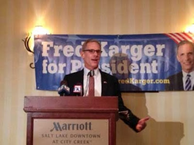 Fred Karger has been in Utah recently, and the ads he's running seem to be targeting the Latter Day Saints more so than his oponent, Mitt Romney (who happens to be a Mormon). Karger made a video to which I'll link below. But here are a few things I thought were interesting.