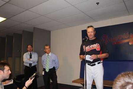 Braves President John Schuerholz appeared at the press conference with McDowell, saying he was glad to have the coach back