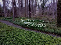 This was the batch I planted this past fall, in the middle of an ivy/pachysandra patch that wasn't easy to dig through. I was worried I didn't go deep enough because of all the roots and vines. But they popped up, as usual, without any problems. It's just too bad they won't last more than another week.