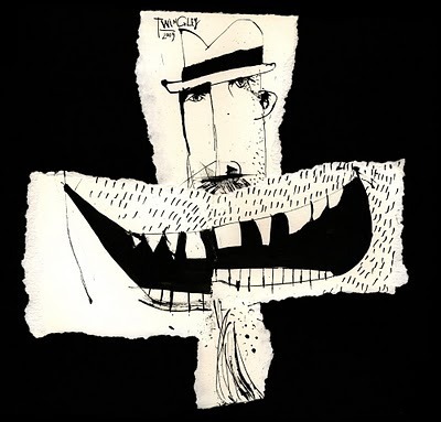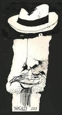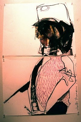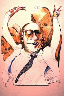 At 3:42 in the morning on February 20th, 2005, I was stepping out of the shower in a towel here in New York City after a long day-and-a-half of meeting deadlines. The Classic Rock station was on and the DJ said: "Hunter S. Thompson took his own life earlier today." Then the DJ played Jumpin' Jack Flash by the Rolling Stones. I'd always liked the twinkle in Hunter's eye, and always thought that he could've been a Twain or a Mencken. The first picture is one I did for the Los Angeles...