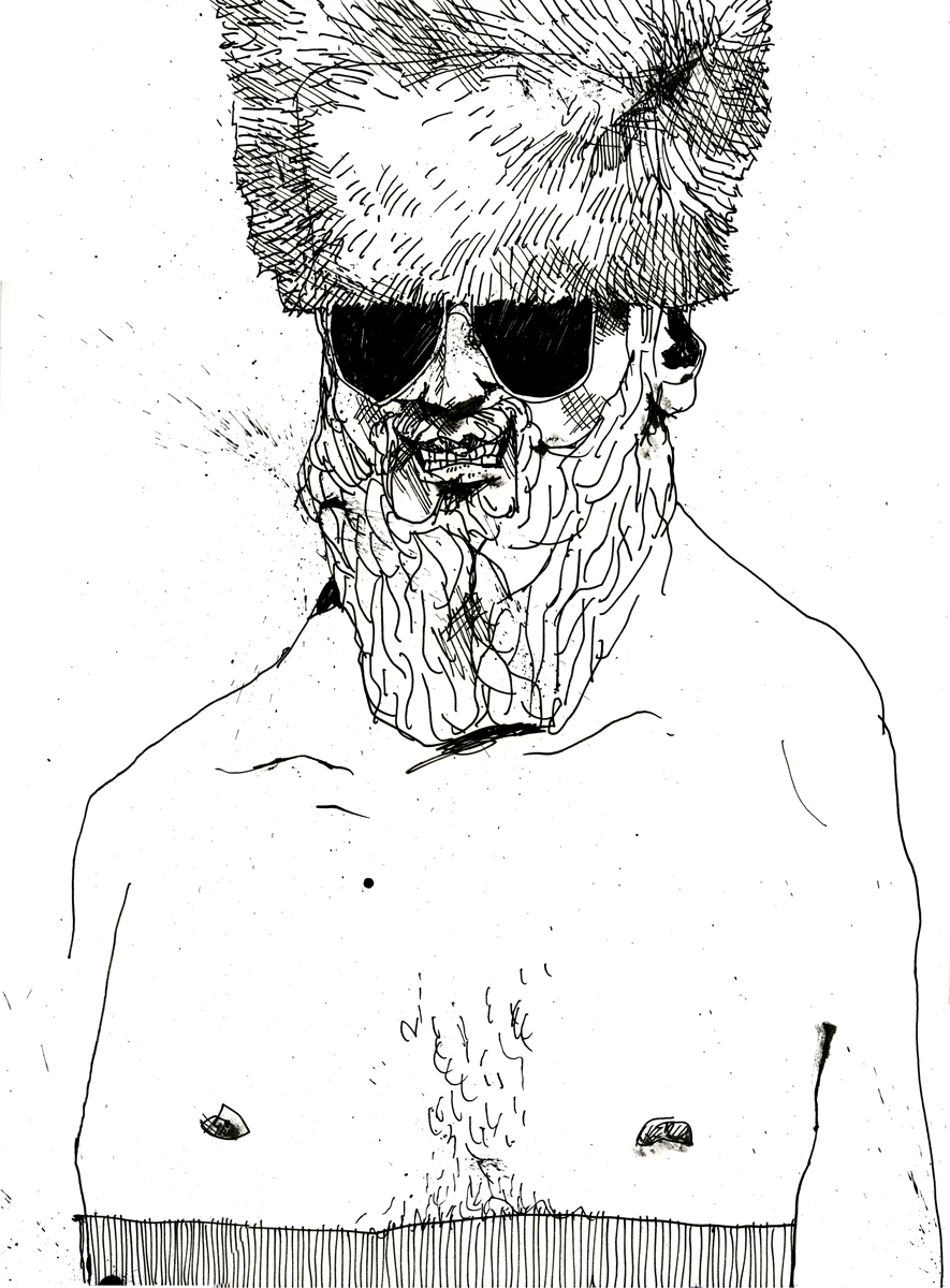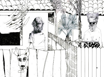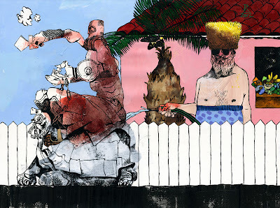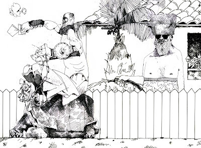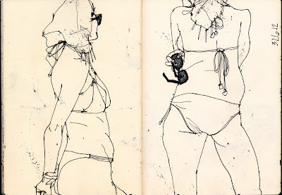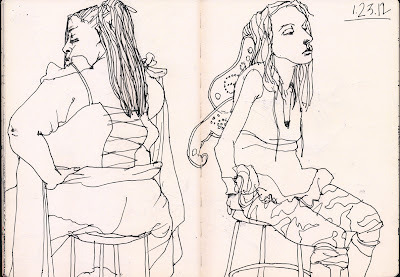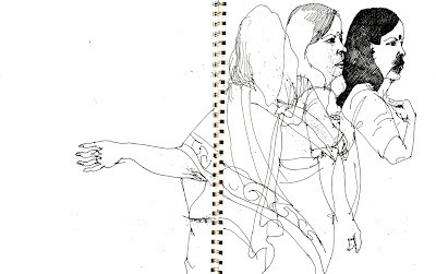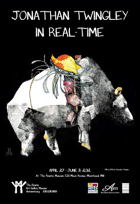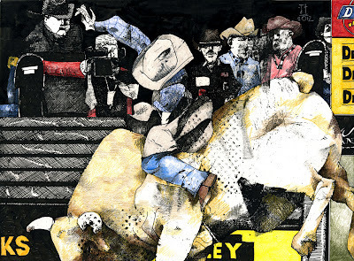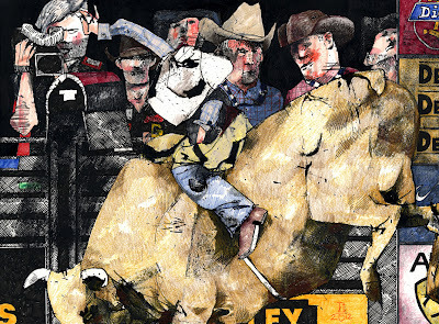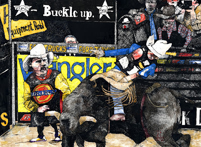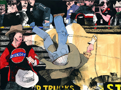 IN REAL-TIME, a carnival of drawings and paintings featuring images based on YouTube screen captures, nude beach Tumblrs, still shots from cable news broadcasts, funerals, fashion shows, talk shows and rodeos. Life in New York City makes an appearance, as well, in paintings based on sketchbook drawings of subway cars and low-lit downtown bars.