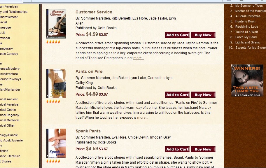 They're four or five story collections and they can be found on the Xcite site or at AllRomanceEbooks and a buncha other places too. I'm smushed up against all kinds of great writers like Jeremy Edwards, Dakota Rebel, Heidi Champa and Justine Elyot. Coolio ;)