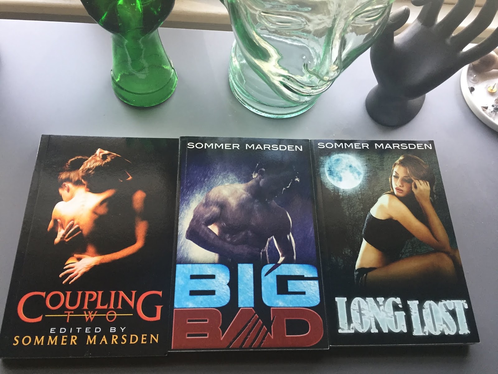 It's time to tackle the bawdy bookshelves since they are sagging precariously under the weight of over a decade of books. I have a lot of paperbacks that are no longer available--whether it be completely or with that particular cover. Each book shown is $14 shipped*, signed to you or a friend, or naked if you prefer.