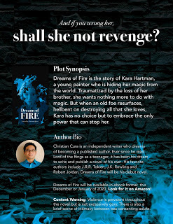 Dreams of Fire is the story of Kara Hartman, a young painter who is hiding her magic from the world. Traumatized by the loss of her brother, she wants nothing more to do with magic. But when an old foe resurfaces, hellbent on destroying all that she loves, Kara has no choice but to embrace the only power that can stop her.