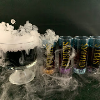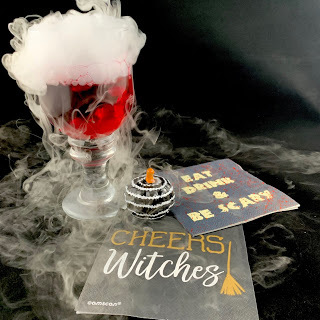 Here’s an easy party punch and a simple shot for your All Hallows’ Eve. For the spooky effect, I added a tiny amount of dry ice.