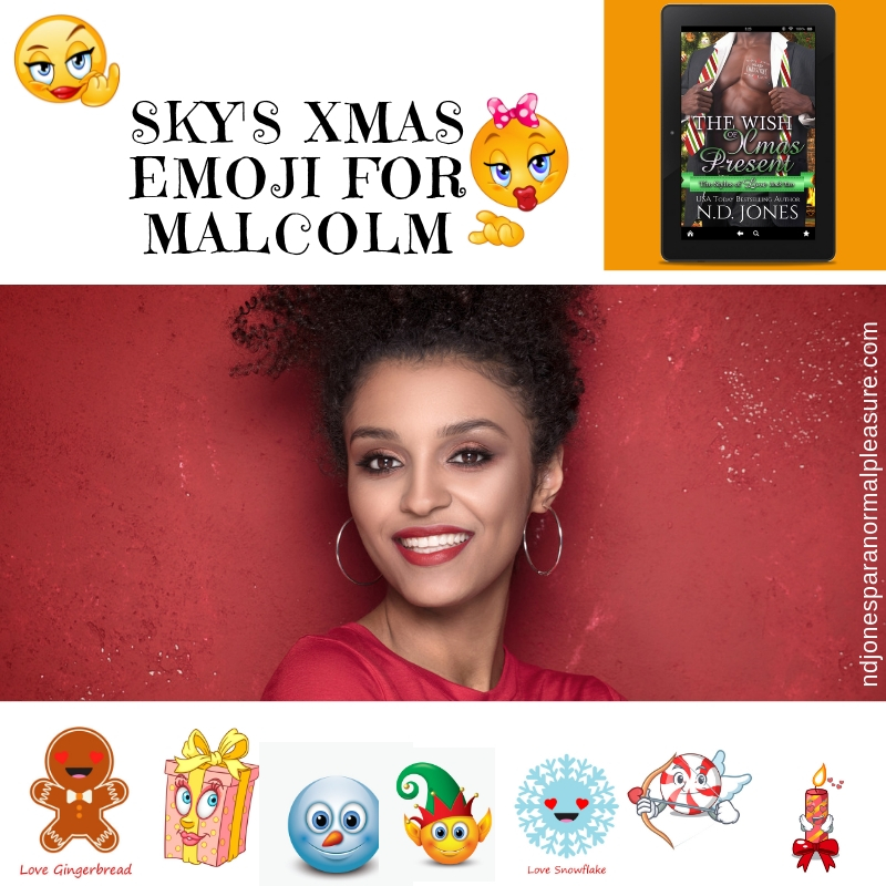 Sky has compiled some of her favorite Christmas emojis for Malcolm she’d like to share. She kept her choices PG-13. If you want to know which emojis made it to Sky’s Naughty But Nice list, you’ll have to ask Malcolm.