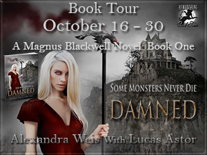 TODAY’S GIVEAWAY: Alexandrea Weis is giving away 3 ebook copies of Damned: Book 1 in the Magnus Blackwell Series. Comment below or email membership@horror.org with the subject title HH Contest Entry for a chance to win.