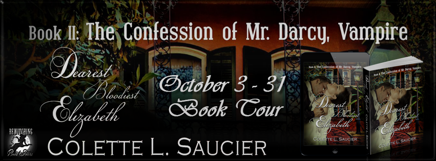 Colette’s latest novel—Book II: The Confession of Mr. Darcy, Vampire—entitled Dearest Bloodiest Elizabeth, follows the newlywed Vampire Darcy and his bride Elizabeth from Britain to Antebellum New Orleans. Due to her devotion to historical accuracy, she spent two years researching Creole Society and Nouvelle Orleans in the years following the War of 1812.