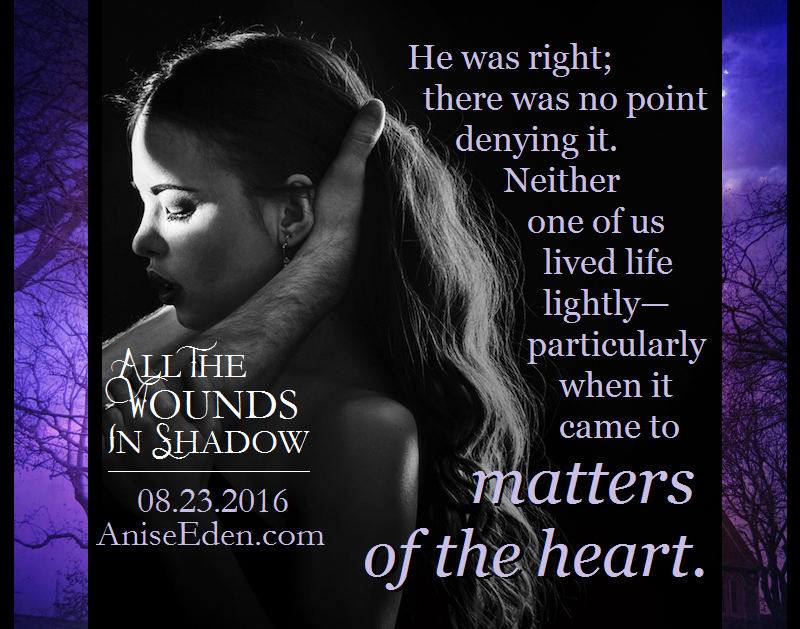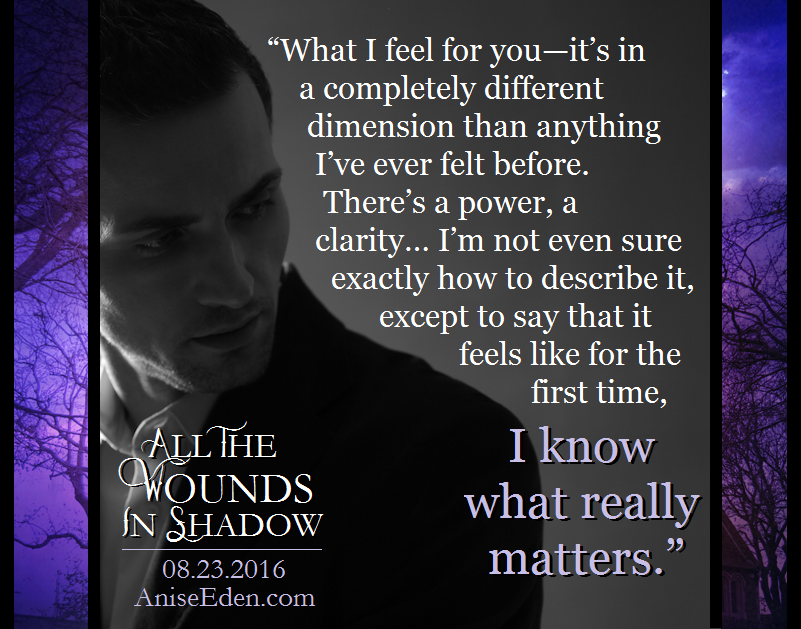 ALL THE WOUNDS IN SHADOW is the second book in The Healing Edge Series, paranormal romantic suspense novels that blend the supernatural and the psychological. The first book, ALL THE BROKEN PLACES, introduces Cate Duncan, a therapist who is struggling to cope after her mother’s death. Cate’s world is forever transformed when she learns that she is an empath and is recruited to work for the MacGregor Group, a clinic staffed by a unique group of alternative healers.