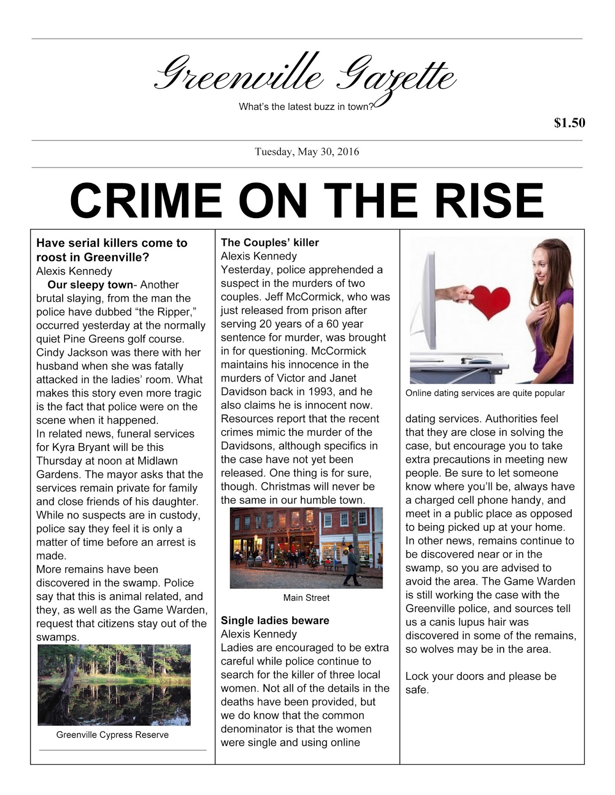 Mayor Boggs had found the debriefings he received from the local law enforcement agencies to be sobering at best and rather disheartening. He told himself in the office after hearing over an hour about some of the local semi-organized crime, “It‟ a good thing I was born cynical or I would be incredibly depressed after that.”