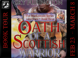 Will they be able to protect wee Robert the Bruce from evil when they end up back in Scotland? Or will their repressed feelings be their ultimate doom? After all, it’s supposed to take the oath of a Scottish warrior to save a future king. Not the oath of a warrior who ended up forsaking all because he lost his heart along the way.