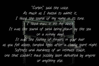 Corbin, it said, not quite as full as the first time. More of a gentle whisper. Little crow. Dark haired beauty.The bed shifted next to me, but I couldn't be bothered to open my eyes. “You're not real,” I said into the darkness.Something brushed past my face, just below my lip. It was neither warm nor cold, just a presence of slight pressure and then nothing.But I am real, Corbin, the voice said in a whisper. In time, I will show you how real I am.I took a deep breath. This was crazy. But I was also all alone, so even though I was scared of what hearing this voice meant, I was comforted that it was here with me.“What do you want?” I asked.Murmuring. Light voice on top of light voice, speaking over one another in different languages and whispers of words I understood, just not in this context. When it went on too long, I sighed. “Can you at least tell me who you are?”I managed to open my eyes, staring at the blank ceiling, shadows of the ever-present flies playing off of it. I wondered for a second if my eyes were really open or if they had only opened into a different dream. I blinked once, twice. The voices disappeared. I couldn’t be sure in my half-awake state, but I felt the covers shift beside me. I didn't care that this was just my mind trying to cope with my mother leaving.You aren't afraid of me, are you? But it wasn't quite a question.I rolled over, exposing my back to the unseen entity. “No,” I said. “I guess not.”My hair lifted off of my back gently, as if someone was running their hands through it lovingly, the way Mom used to when I was sick when I was little.“I'm afraid of what you mean,” I said. “I'm much too old to be playing with imaginary friends.”I felt breath on the back of my neck. It was warm and smelled of dried leaves. I melted into the scent of it, relaxing my head against the pillow. You don't think I'm imaginary, the voice said, so close to my ear that they sounded like they were right there, speaking directly to me and no one else. Not really.