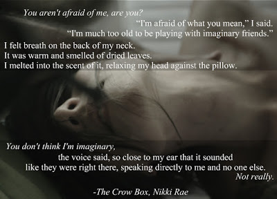 Excerpt:A tap on the window. Something that was too much like a tree branch to really draw any attention. Then it got louder. I shoved the pillow over my head, sinking its weight into the cool fabric and throwing the covers over my head for extra good measure. I almost forgot where I was until I felt the rough fabric of the blanket that wasn’t mine. I tried to open my eyes, but I didn’t care enough to exert the amount of energy it took. Instead, I rolled over, sinking deeper into the darkness surrounding me.I knew somehow that I had slept through all the daily activities, through group therapy and arts and crafts and TV hour. I knew it was past lights out and I found myself not caring that it would all be monitored. I could stay in this room, in this bed forever. Somewhere between sleeping and waking, between my body and muddy, thick mind, I heard the voice. I couldn't understand what it said, but it was a gentle, almost cooing sound, like one a mother would use on a child who had woken in the middle of the night from a bad dream. But they were down the hall and too far away to offer me anything.The blanket shifted and I couldn't see because my eyes were closed; the blankets and pillow still covered my head. A moment of quiet, then the mattress dipped in next to me, in front of me. My heart pounded in my head, my throat. A second later, the pillow slid from my head, but I couldn't tell if it was my own doing. My head was too heavy; my thoughts were too clogged to get one solitary explanation through.Hush now, the voice whispered. It was right next to my ear, right next to me. I'll show you.Yes. Show me. Show me how to be insane. Show me how to be just like my mother. I kept my eyes completely closed.Corbin, said the voice. As much as I hated to admit it, I liked the sound of my name in its tone. I liked how it hit me deep. It was the sound of sand being blown by the sea on a windy day. It was the feeling of fingers in your hair as you fell asleep, tangled limbs after a closely spent night. Softness and hardness of an intimate touch, one that couldn’t have possibly been delivered by anyone or anything else.“Yes?” I hadn't realized I said the word out loud until my hot breath was bouncing back at me against the covers. I was afraid my roommate would hear, but her heavy snoring reassured me.So you are with me, it whispered. Each word caressed my face, sent warm shivers through my skin and into the bone.I opened my mouth to say something else, but I couldn't think of anything; I doubted I would even be able to get the words past my teeth.Hushhhhhh, said the voice. I felt something slightly cold, yet not completely solid against my waist. It wasn't enough to make me shiver. It wasn't anything that woke me further from the drugs. My shirt slipped upward, past my belly button before it stopped.I inhaled sharply and turned over onto my back, convinced that I was half-dreaming and if I switched positions, the dream would change just as easily.A few moments of silence. A few moments of the tapping on the glass, the rustle of the wind outside as the rain pelted the roof. It lulled me back into comfort, back into darkness.My little crow, crooned the voice. Again, right in my ear, right in front of my face. It made the blackness behind my eyelids shake, sprout leaves and take root. My precious petal.I was almost unaware of the sheet moving off of me, the blankets shifting until I heard them rumple into a careless pile on the floor. My face became warm, the smell of damp dirt in my nostrils, the sound of static electricity zipping through my brain, setting off synapses to synapses.“What are you doing?” I whispered. But my voice sounded so far away, like I was standing on top of a very high tower and trying to make my words heard to people down below.I felt my hair being moved from my forehead, then a small, sweet amount of pressure applied there. Kissing you, my love.I liked the gesture. It overrode any logic, any sense of self I could bring forth from the darkness.“Why do you only kiss me at night?” I whispered.Another small peck, warm and then cool against my cheek. I am strongest at this hour. The words slithered around my skin, crawled to the back of my skull like some creature that had suddenly sprouted legs. And you are most open to me.“Open?” I asked, my head swimming with medication, my eyes glued shut, my body heavy with sleep that had yet to come.I felt the slight breath of an amused, silent laugh. Yessssss, the voice whispered. Open, my crow.