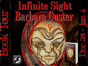 As you might infer from reading the back cover blurb of Infinite Sight, protag Lilly gets into deep trouble after her mishap with Baby Miller’s ventilator, beginning with her bleeding ulcer and concussion. During her leave from work, she takes in an extraterrestrial named Laylok, who was headed to a death camp before his ship crashed. She packs heat against the alien man-eating lizards from his ship. The effects from her head injury wakes up a dormant part of her brain, enabling her to read minds. What’s more, Laylok anticipates the arrival of more soldiers who want him dead. Nevertheless, Lilly returns to work as a respiratory therapist – has no choice if she wanted to keep her job.