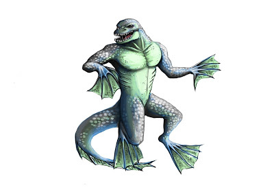 Here is an illustration of what Mutter looks like once he turns into a River Man. I don’t have an illustration of him before he was genetically modified, when he was Mutter the Guard.