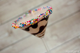 Instructions:1. Rim your serving glass with a generous amount of vanilla frosting. Make sure to get the inside, outside and top of the rim.