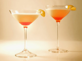 6. Fill the bottom of a martini glass with maraschino syrup. Strain cocktail into the glass to float on top of syrup. Drop in the lemon twist. Drink.