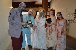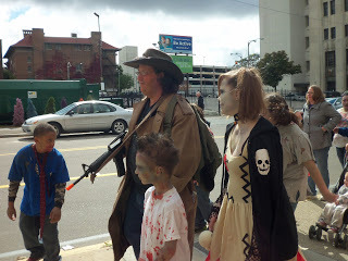 The photo to the left is from last year- my daughter was a zombie voodoo doll, my little guy a zombie and my husband the zombie hunter.