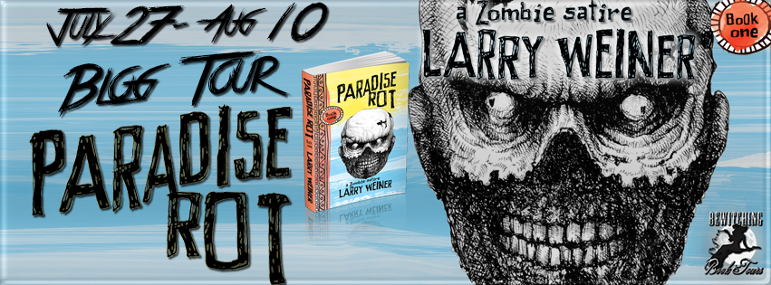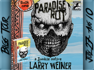Larry Weiner is the author of PARADISE ROT (BOOK ONE), ONCE AGAIN, WITH BLOOD (BOOK TWO) and the forthcoming HINDU SEX ALIENS (BOOK THREE) that make up the Island Trilogy. Larry earned a degree in film from CSULA and was an award-winning art director. He lives on an island in the Pacific Northwest with his wife, two kids and a gaggle of animals. He plays bass and thus has poor hearing.
