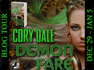 Demon Fare, the first book in my Spawnstertown Chronicles, is an urban fantasy set in a alternate history New York City. A hundred and fifty years ago, a powerful earthquake trampled the entire planet, destroying almost everything in its wake. Millions died, cities crumbled, and progress came to a screeching halt. It’s now the twenty-first century and civilization still relies on steam-powered energy, but there’s help from a magical species unearthed by the quake. The people have named them demons because of where they came from, but these amorphous creatures of energy are gentle and want only to serve humans by possessing their machines to make them run.