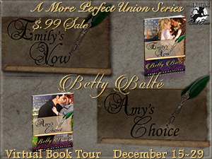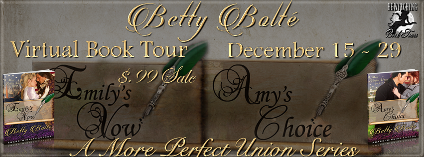 Betty Bolté writes both historical and contemporary stories featuring strong, loving women and brave, compassionate men. No matter whether the stories are set in the past or the present, she loves to include a touch of the paranormal. In addition to her romantic fiction, she’s the author of several nonfiction books and earned a Master’s in English in 2008. She is a member of Romance Writers of America, the Historical Novel Society, the Women’s Fiction Writers Association, and the Authors Guild. Get to know her at www.bettybolte.com.