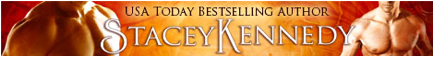 STACEY KENNEDY is the USA Today bestselling author of the CLUB SIN series. Growing up, Stacey’s mind wandered the path less traveled and that path most often led to love. She has always broken rules and she continues to feed off emotion – staying true to her heart. Those traits are now the bones of her stories. She lives in southwestern Ontario with her husband, who puts any of the heroes in her books to shame, and their two young children. If she’s not on mom duty or plugging away at a new story, you’ll find Stacey camping in the summer, hibernating in the winter and obsessing over Penny Dreadful, Game of Thrones and Sons of Anarchy.