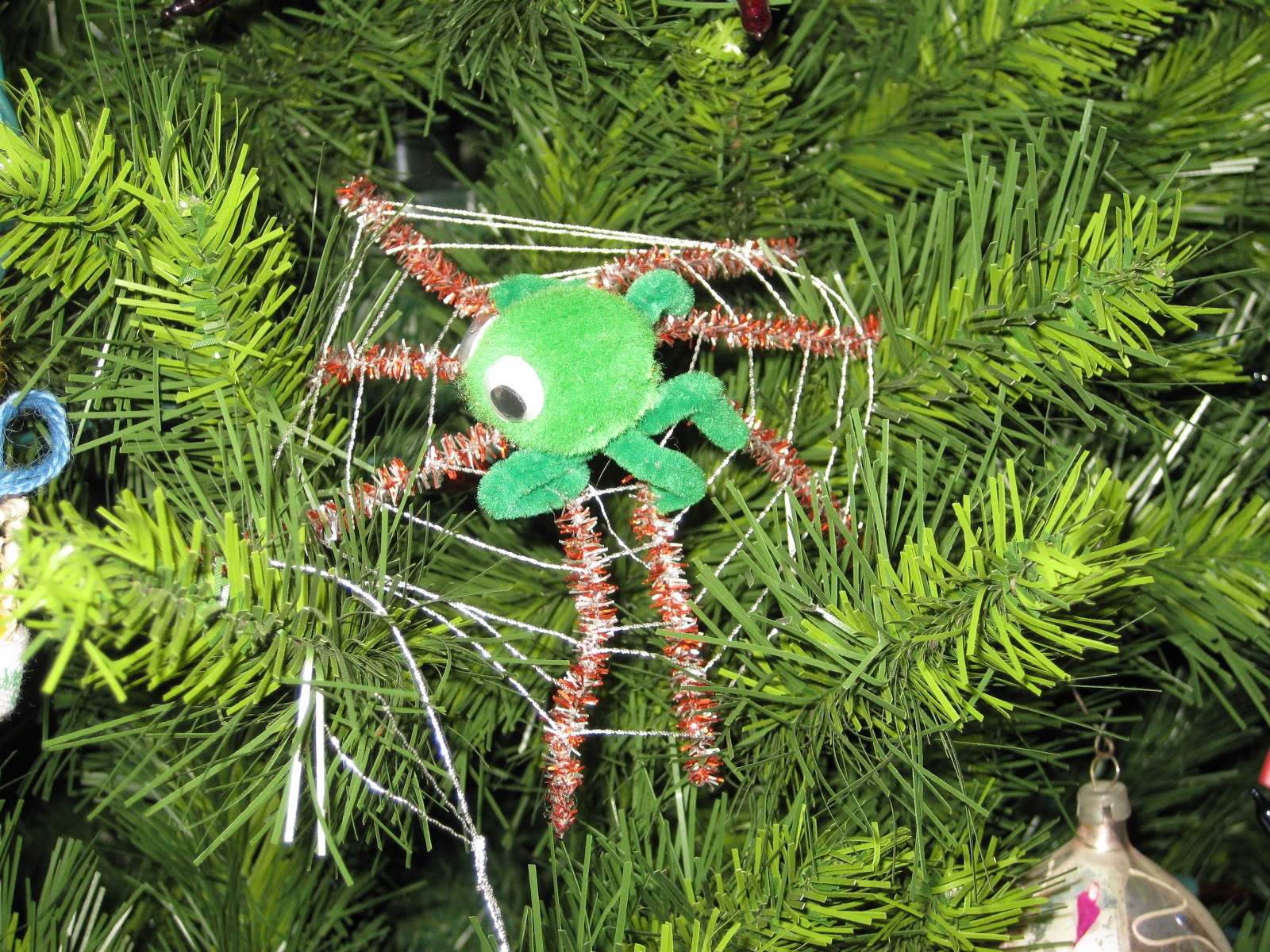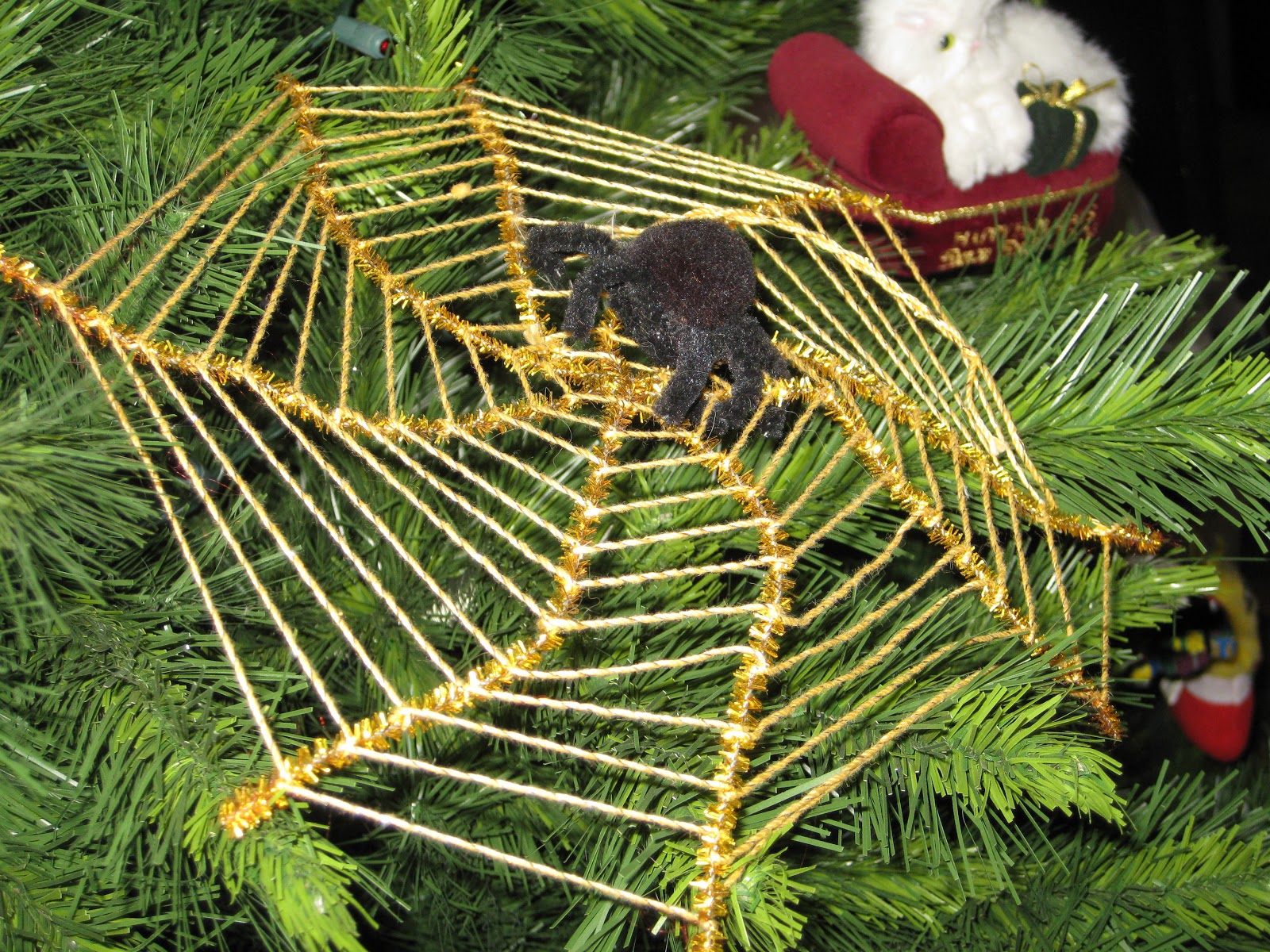 This is a Christmas tradition in my family, and my Christmas tree I’ll set up will have my spiders on their webs to grace the top branches. The story is retelling of The Legend of the Christmas Spider that I learned in gradeshool from my mother, who taught it to her class and made spiders with them. For a couple more “official” variations on this classic tale, see this website: http://spiderwisdom.com/?p=41