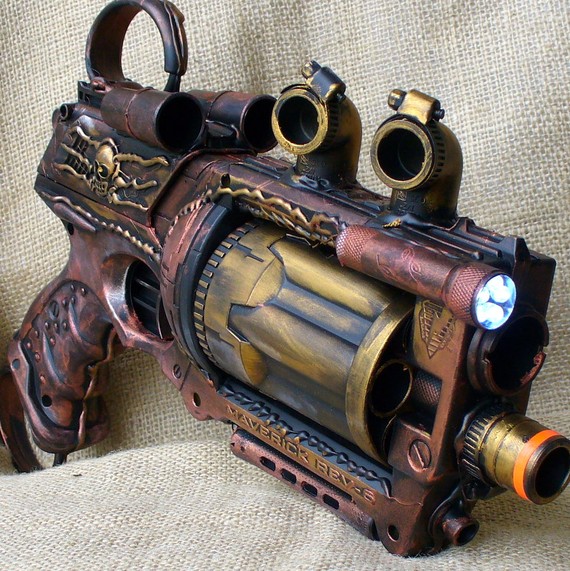 Steampunked Nerf gun from the Old Junk Yard Boutique on Etsy1. For the playful – I once worked in a place where employees shot each other with Nerf guns over the tops of our cubicles a few times a day. Whether you’re looking to attack coworkers or to stock up for a private Nerf war amongst your nearest and dearest, here’s a tricked out gun perfect for skirmishing. Under $75.