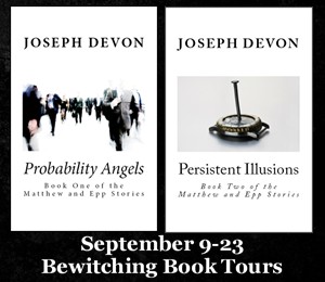Blurb for Persistent Illusions:In Probability Angels, we were introduced to the world of Matthew and Epp. Back then, Matthew thought he had his hands full just learning how to be an undead tester of humanity, but then Hector staged an uprising and everything Matthew thought he could take for granted fell apart.