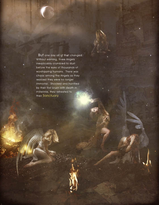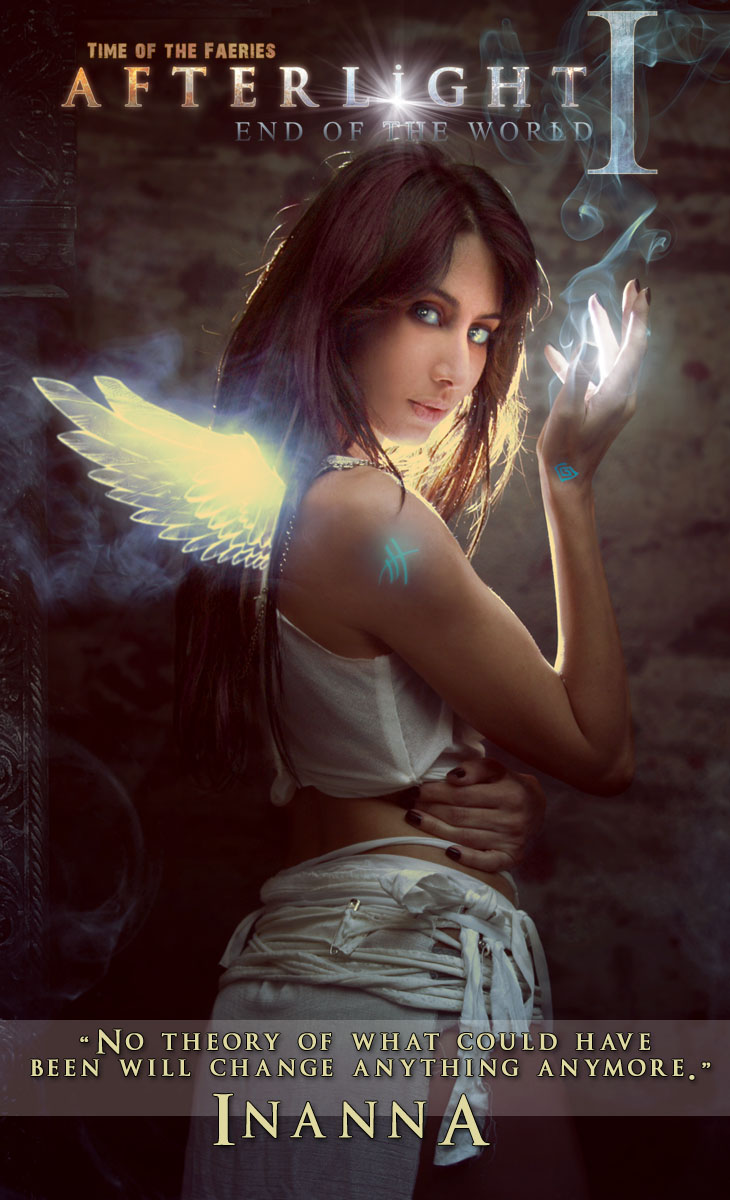 Time of the Faeries: Afterlight is a four-part graphic novel series that explore the origins of the Faeries, the evolution of Angels and Vampires from a common Fae ancestor, and their own unique adaptations to the modern world. It follows the alliances and tensions that develop between these three species as they struggle to protect human civilization or shape it to their will. The Afterlight follows several lines of cause and effect, revealing possible versions of the Apocalypse at the hands of all three species.