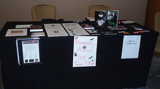 Tweet / 25 May – #Baycon sitting @ http://horroraddicts.net table chatting with @hroulo