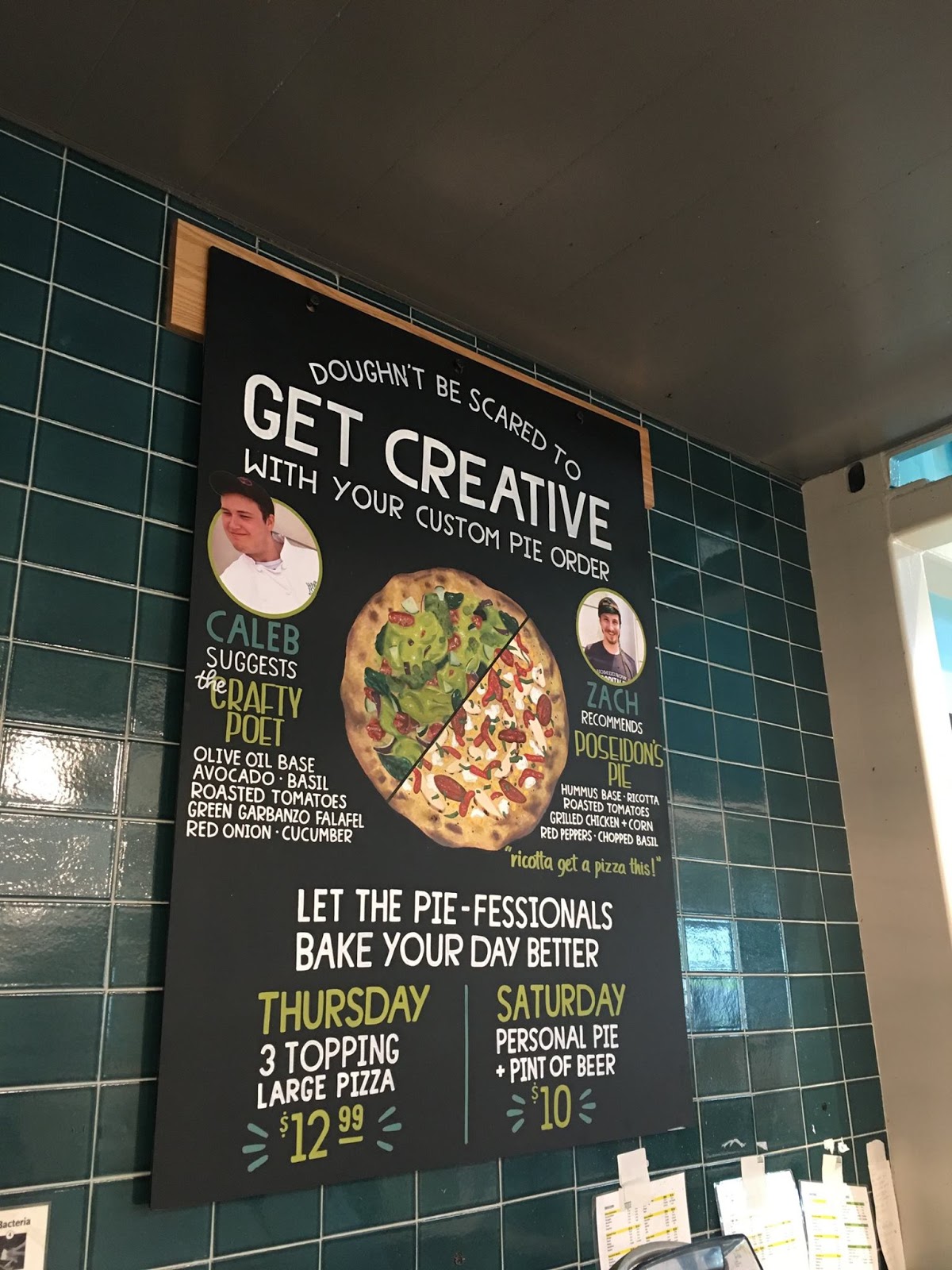 I knew that my book, The Crafty Poet: A Portable Workshop, had inspired the creation of many poems, but never imagined that it would somehow inspire the creation of a new pizza! And yet Caleb Michael Price, pizza chef, poet, and student of Melissa Studdard in Texas, has created a new pizza, the Crafty Poet Pizza. Check it out on the chalkboard at the shop where Michael crafts his pizzas along with fellow chef, Zach. The Crafty Pizza includes avocado, basil, roasted tomatoes, and more! Wow! Too bad they don't deliver to New Jersey. Thanks, Melissa, for being the kind of teacher who inspires her students in multiple ways. And thanks, Michael, for this tasty tribute to The Crafty Poet.