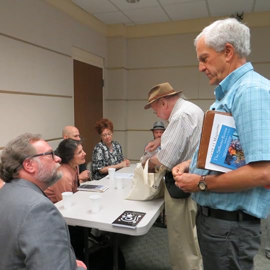 Then last year I began to feel that a change was needed so switched the focus to poets with new books. I invited six poets to be featured at the festival. The journals were again included, but the editors did not invite poets to read. Instead, the six featured poets read in two groups of three, each for 15-17 minutes. Journals were for sale as were the poets' books. There was also a panel during which the poets discussed process. And there was a publishers' panel.