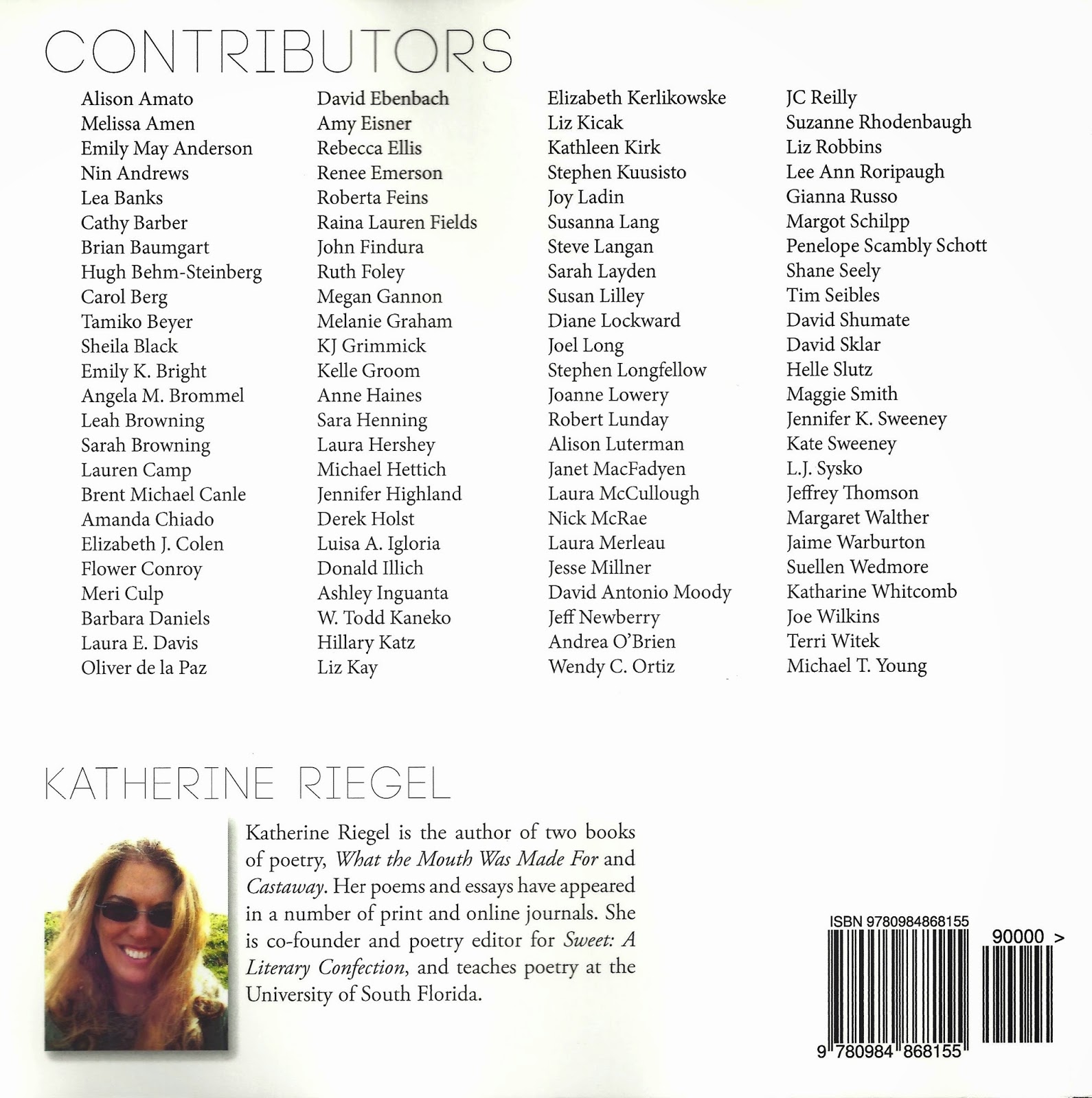 Click for AmazonHere's the back cover's list of contributors.